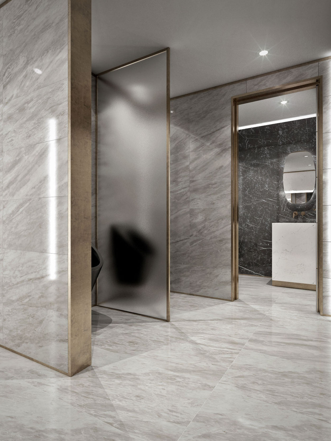 Rendering ambientato.Modellazione 3D della scena e degli arredi.Studio della composizione dell’immagine.Studio della luce.Studio dei materiali.Cura dei dettagli.Prodotto ceramico: Atlas Concorde Italia – Marvel Edge.