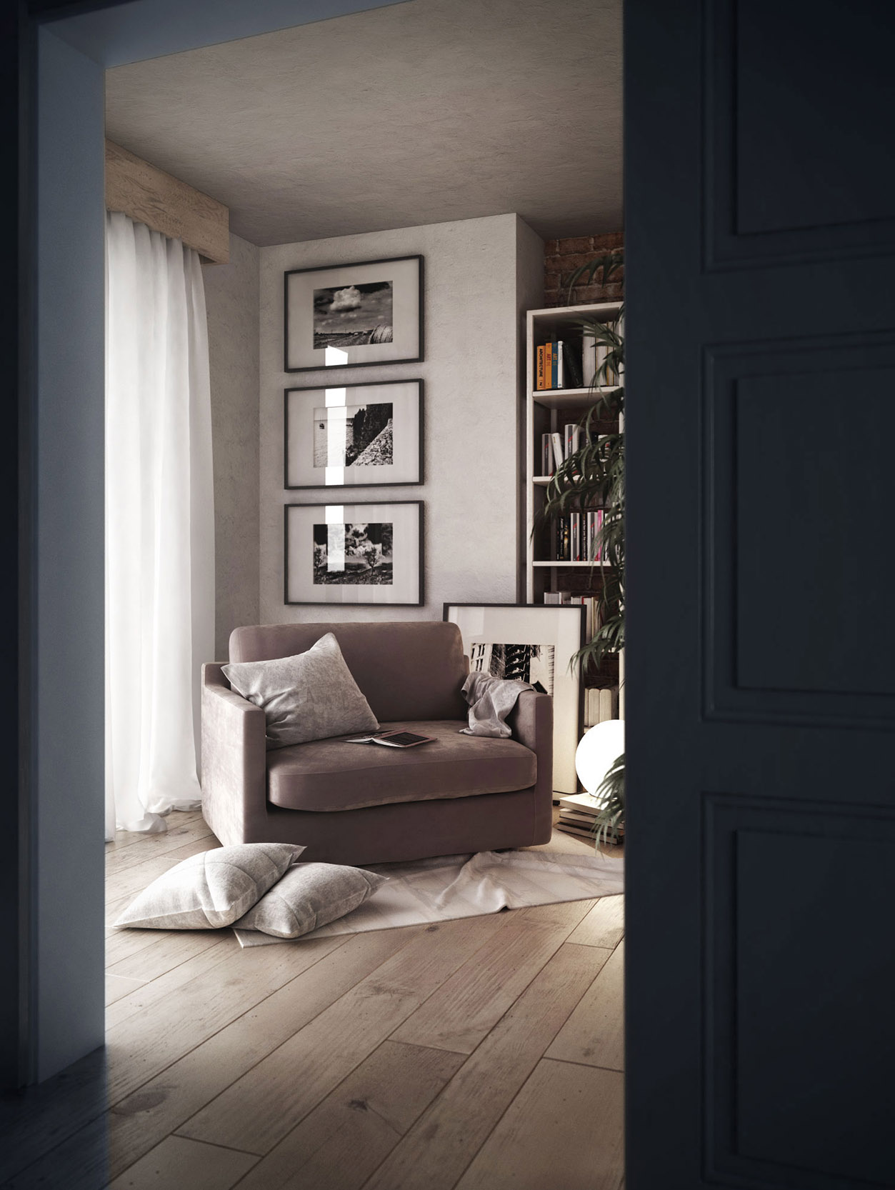 Immagine personali di studio.Modellazione 3D della scena e degli arredi.Studio della composizione dell’immagine.Studio della luce.Studio dei materiali.Cura dei dettagli.